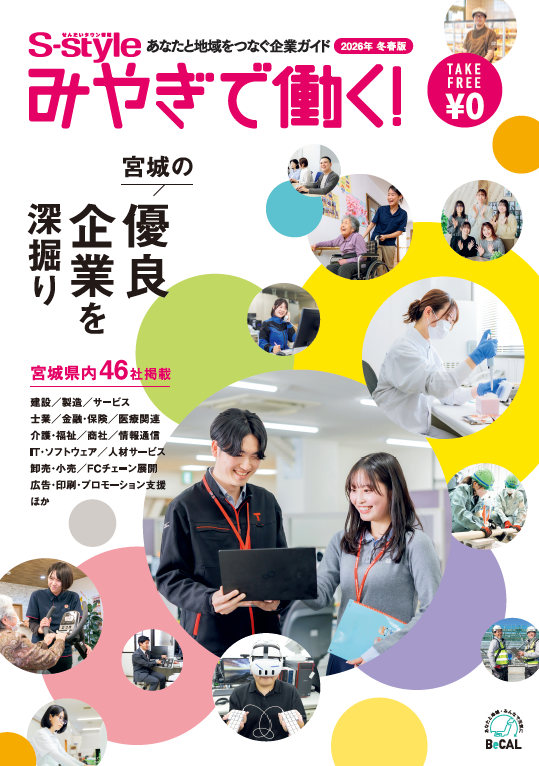地元宮城の皆様の働く姿や商品・サービスなどにスポットを当て、企業様の魅力を紹介する企業ブランドガイド「せんだいタウン情報S-style みやぎで働く!」を、年1回フリーマガジン版として発行しています。また、フリー配布版のスピンオフ企画として、「せんだいタウン情報S-style」内においても企業情報を掲載。出版社による第三者目線で、企業様の魅力を読者に明確に伝えます。