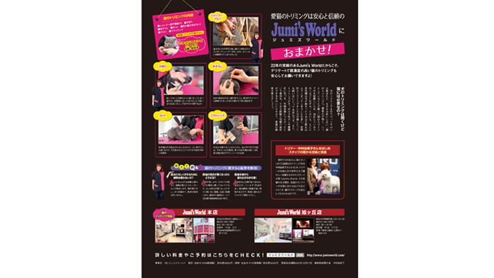 この号で掲載されたクライアント様は、犬はもちろん、猫のトリミングも行うペットショップ『ジュミズワールド』様。