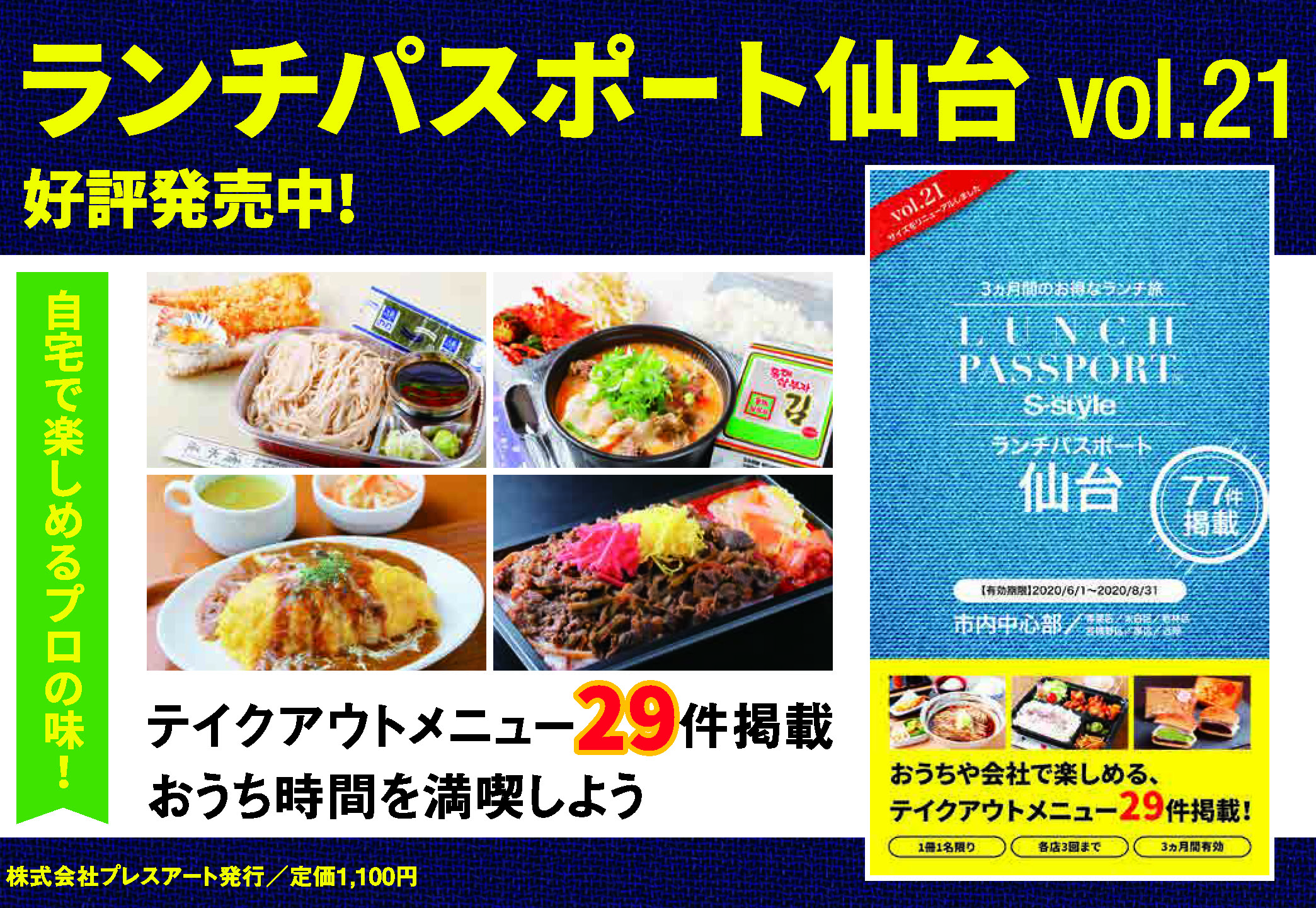 こんにちは。ランチパスポート仙台 編集室です。『ランチパスポート仙台 Vol.21』は本日・2020年5月29日(金)発売です。