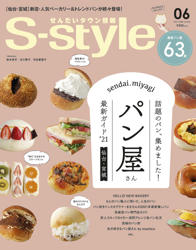 6月号(2021年5月25日発売)の巻頭特集は、「仙台・宮城 パン屋さん最新ガイド’21」特集。おうち時間の増加に伴い、需要が高まるパン屋さん。パンを愛するインスタグラマー・まなちんさんに聞くトレンドパンのほか、新店&人気ベーカリーを紹介します。